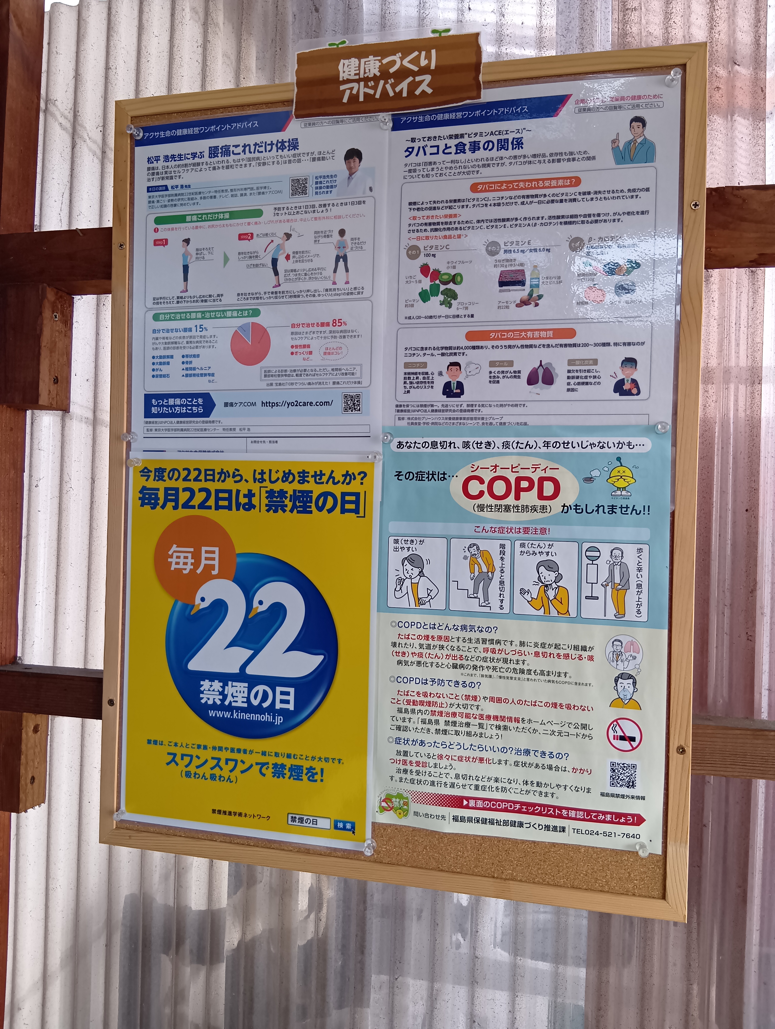 COPDなど、タバコに関する情報とともに掲示することで、少しでも喫煙による健康リスクや受動喫煙の問題について関心を持ち、禁煙を考えるきっかけとなればと期待しております。